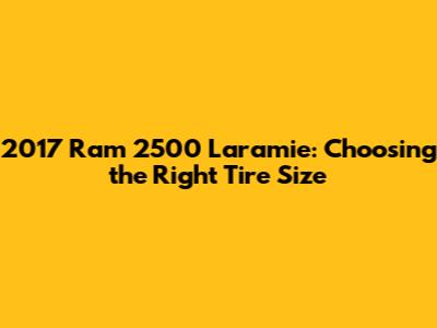 Choosing the right tire size for your 2017 Ram 2500 Laramie involves considering various factors, from the stock specifications to your specific driving needs and preferences. Understanding the stock tire size, exploring aftermarket options, and maintaining your tires properly are all essential steps in ensuring optimal performance, safety, and longevity. Whether you stick with the stock size, explore plus sizing, or opt for larger tires for off-roading, make sure to prioritize safety and consult with professionals when needed. With the right tires and proper maintenance, your 2017 Ram 2500 Laramie will continue to deliver the performance and reliability you expect.
