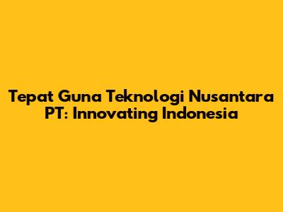 Tepat Guna Teknologi Nusantara PT: Innovating Indonesia
